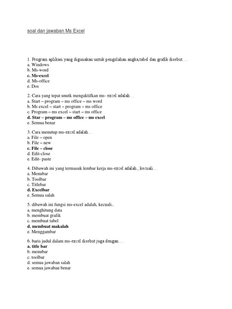 Soal Dan Jawaban Microsoft Excel Kelas Xi / Apa Yg Dimaksud Dgn Title Bar Menu Bar Dan Formula Bar Brainly Co Id / Maybe you would like to learn more about one of these?