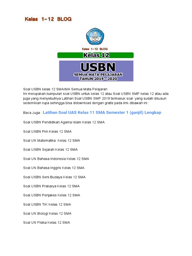 Semoga ini menjadi sarana yang dapat membantu para siswa smp kelas 12 dalam menghadapi ujian sekolah (us) usbn sma.